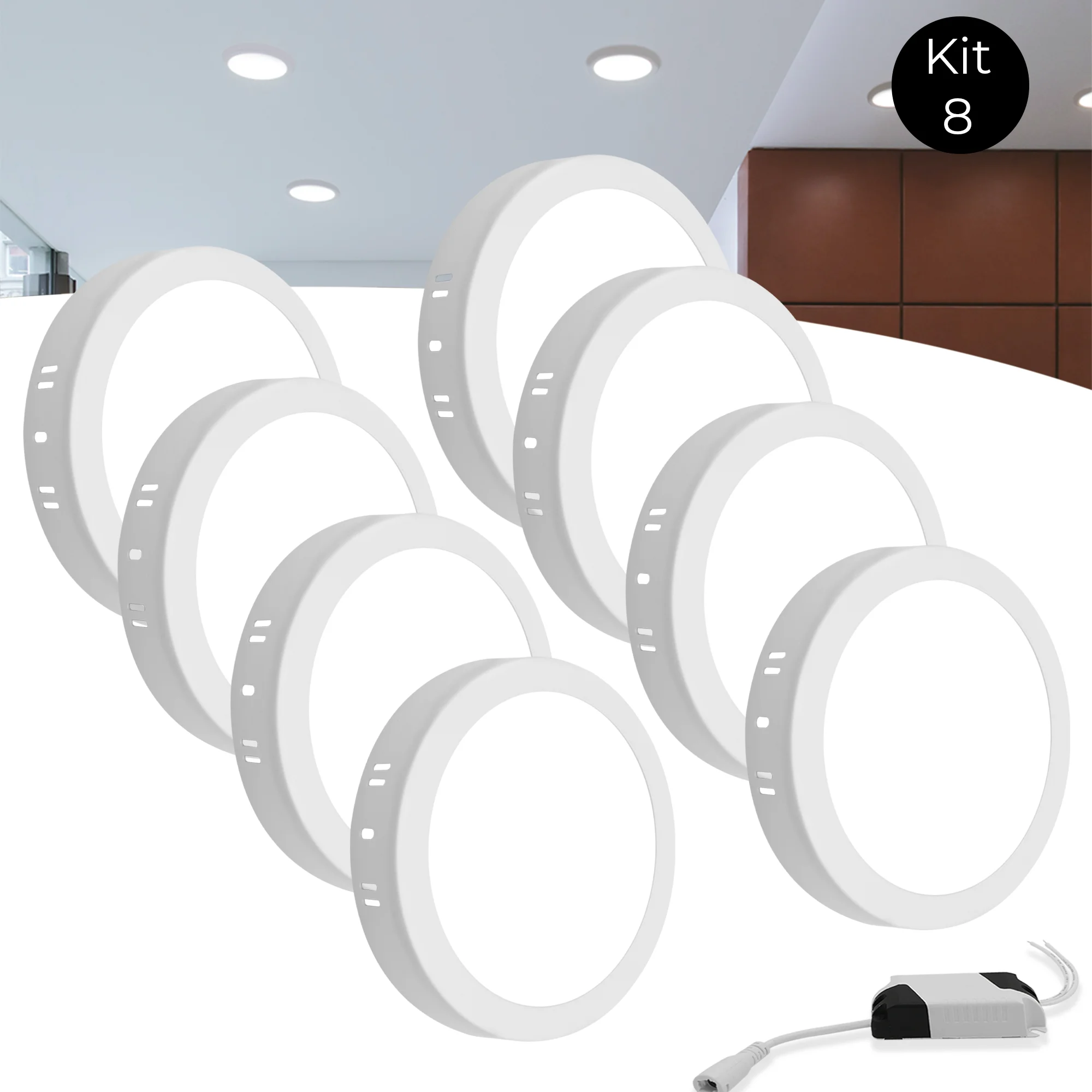 KIT 8 PAINEL DE LED SOBREPOR 12W REDONDO BRANCO FRIO