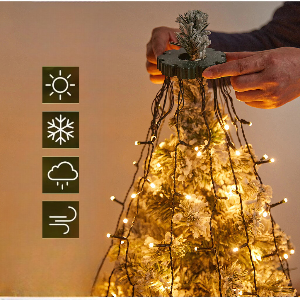 O companheiro perfeito para sua árvore de Natal: As luzes são a prova d'água e especialmente projetadas de acordo com o formato da árvore de Natal, diferentes das luzes de corda de Natal antigas, que precisam ser continuamente enroladas e colocadas. A nossa Instalação é rapida, em menos de 1 minuto.