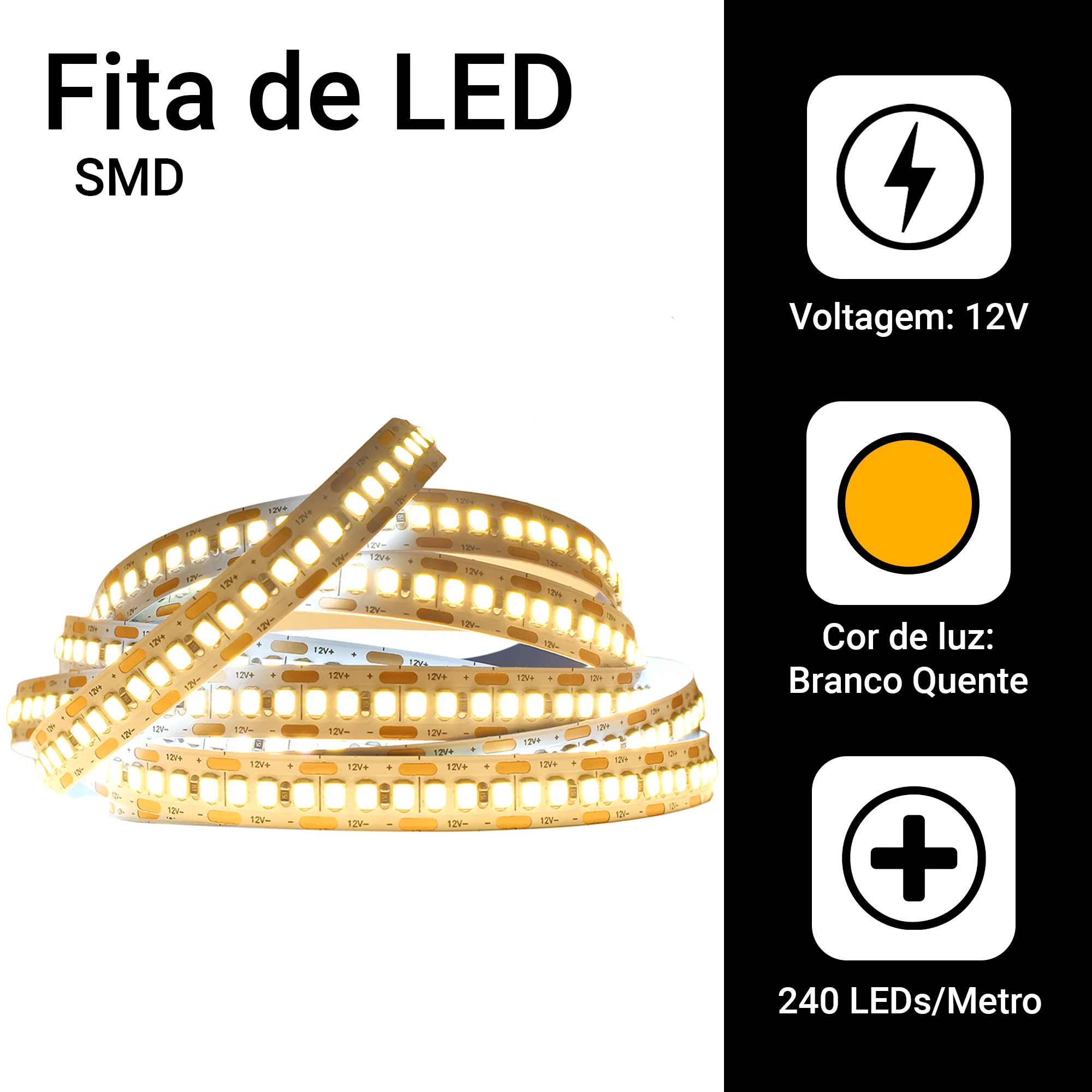 Quantidade de LEDs: 240 LEDs/Por Metro