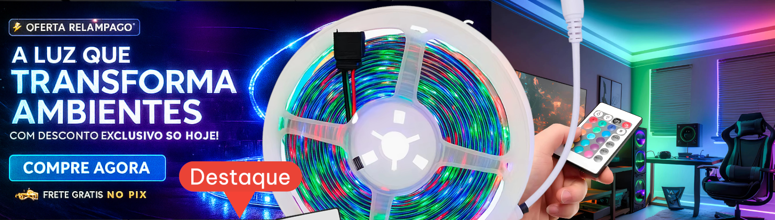 Com iluminação RGB suave e versátil, a fita LED é ideal para transformar quartos, setups gamer, salas, móveis, espelhos e ambientes decorativos durante todo o ano.