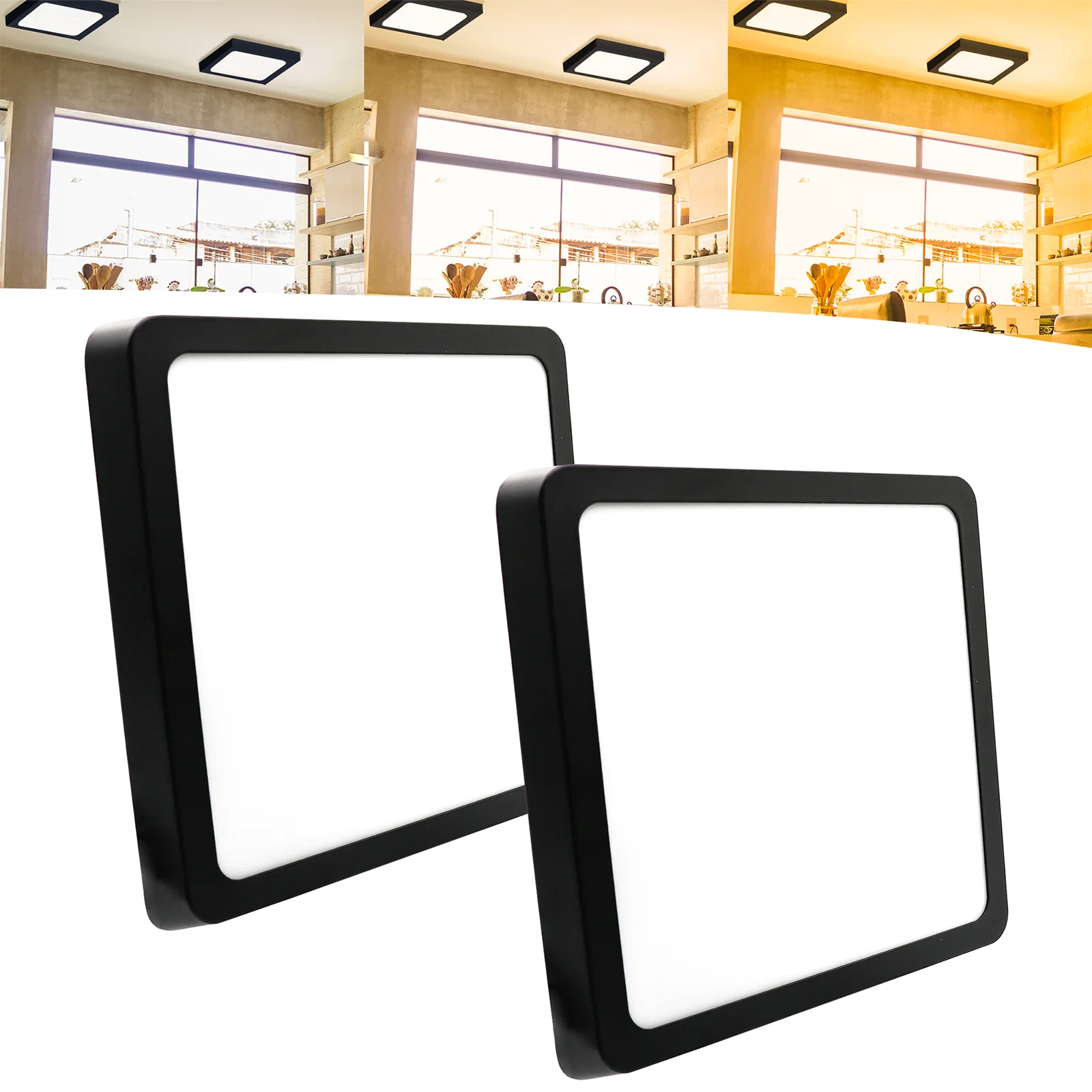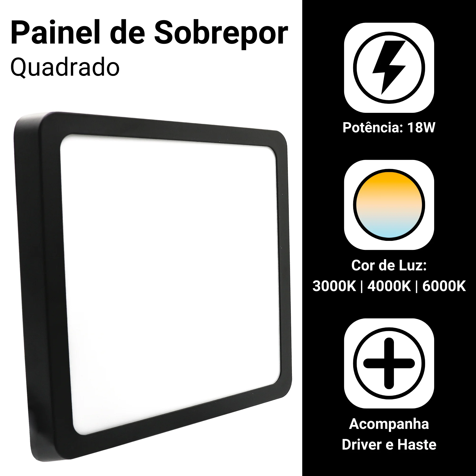 PAINEL DE LED SOBREPOR PRETO 18W QUADRADO BRANCO FRIO / BRANCO NEUTRO / BRANCO QUENTE