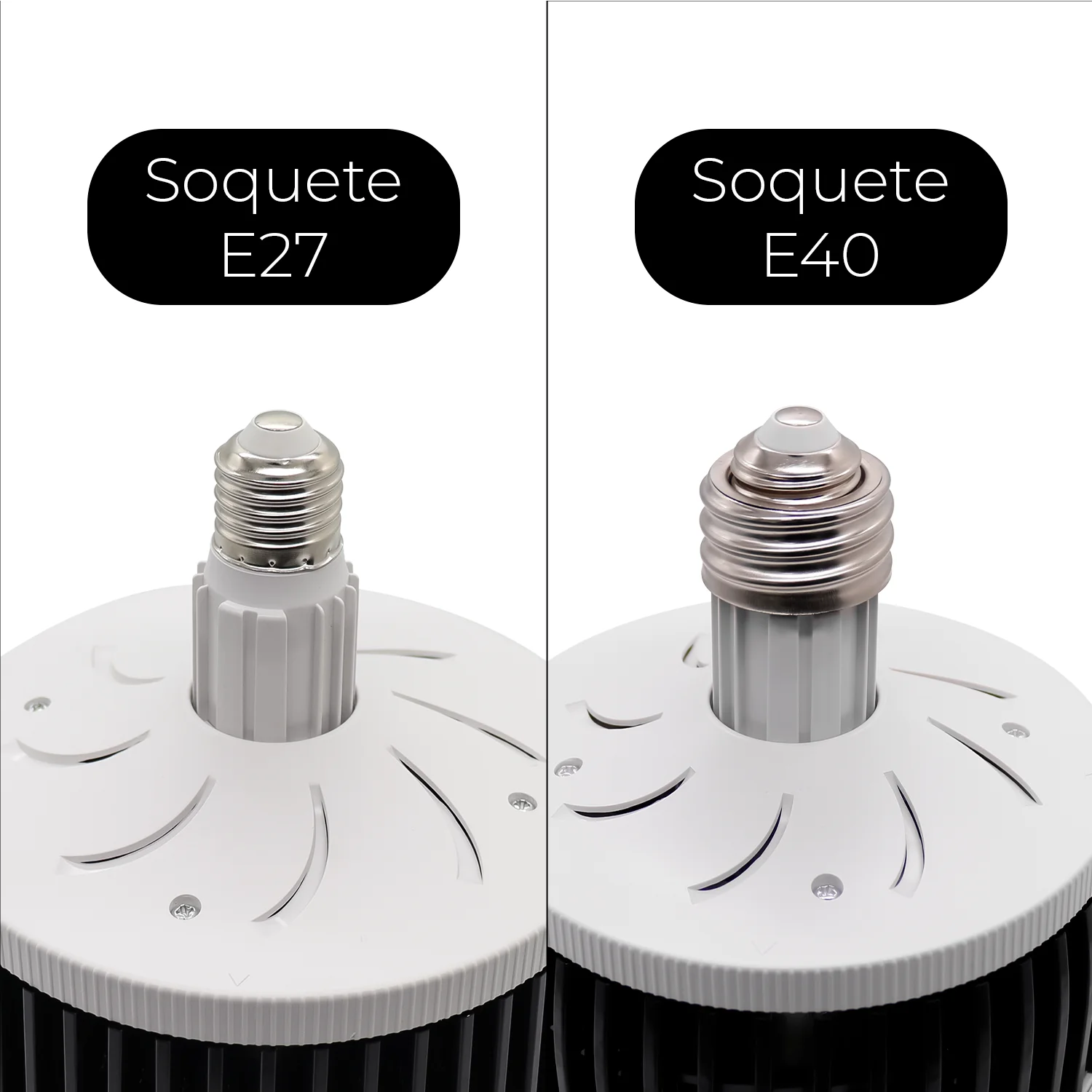 Todas as lâmpadas são com o soquete E27 porém é enviado um adaptador junto para transformar em E40