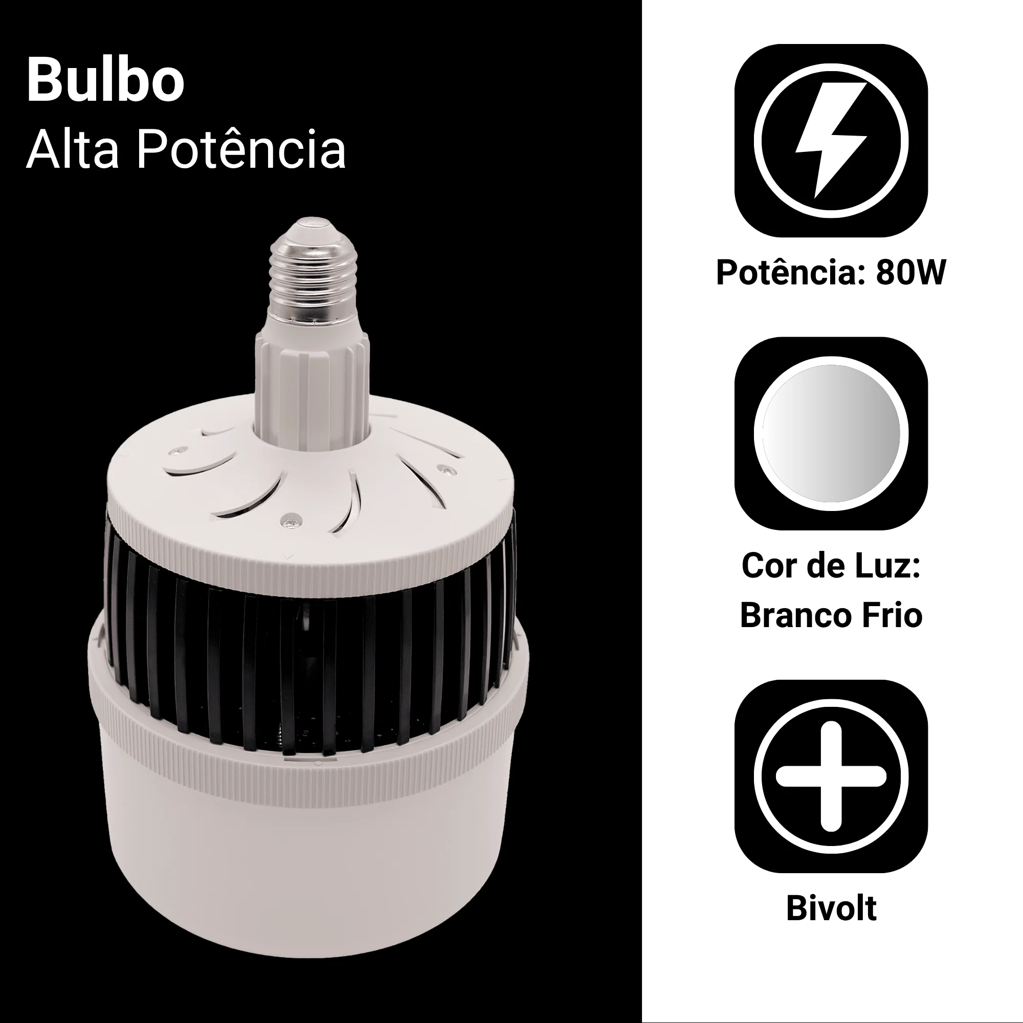Aproveite a máxima eficiência energética e durabilidade com a nossa lâmpada Bulbo LED 80W, perfeita para ambientes comerciais, galpões e indústrias. Com bivolt (110V-220V), ela oferece uma iluminação intensa e de cor branco frio, ideal para áreas de trabalho, garantindo visibilidade e segurança. Além disso, sua tecnologia LED proporciona maior economia de energia, ideal para quem busca um custo-benefício imbatível e qualidade de iluminação superior.