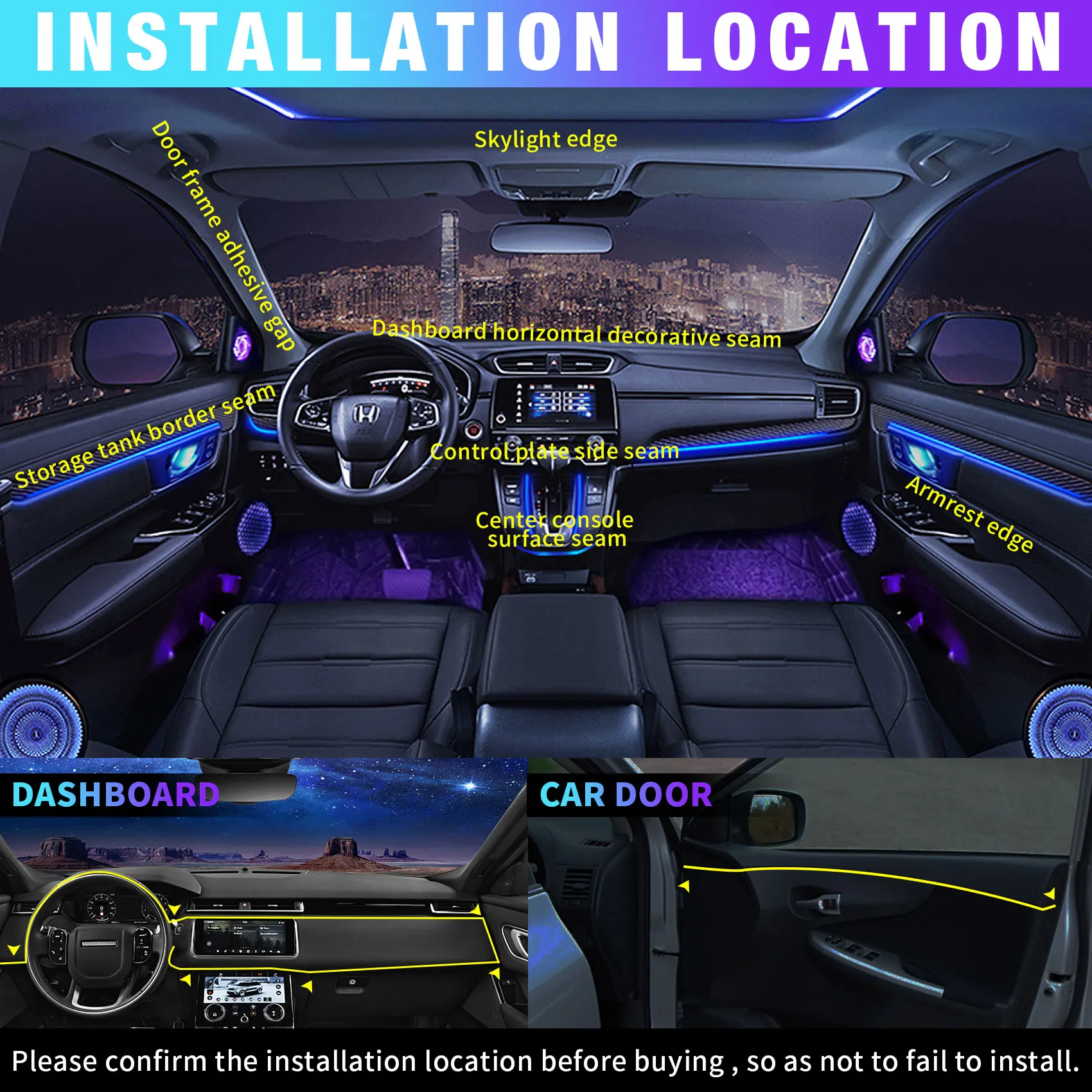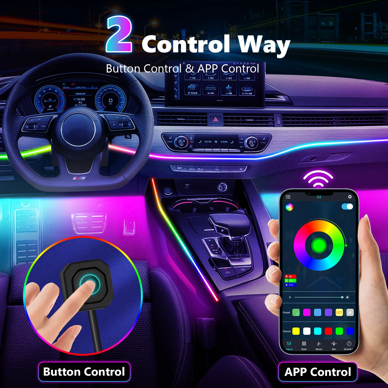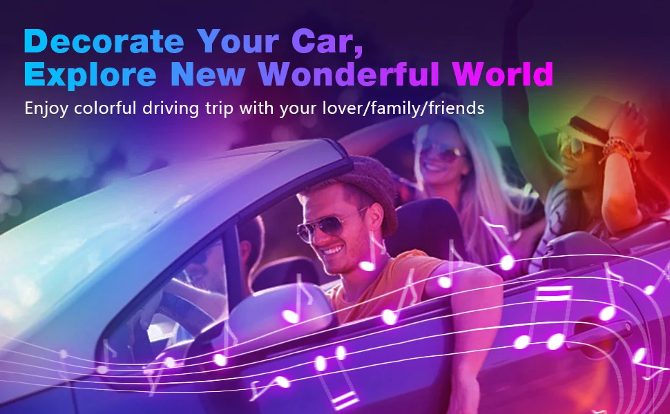 2) musical decoration. The Kit designed to be simple, however, also provides elegance inside the car when driving at night or enjoying music. And because it has sound sensor, the car low brightness system is synchronized with the rhythm of the music.
