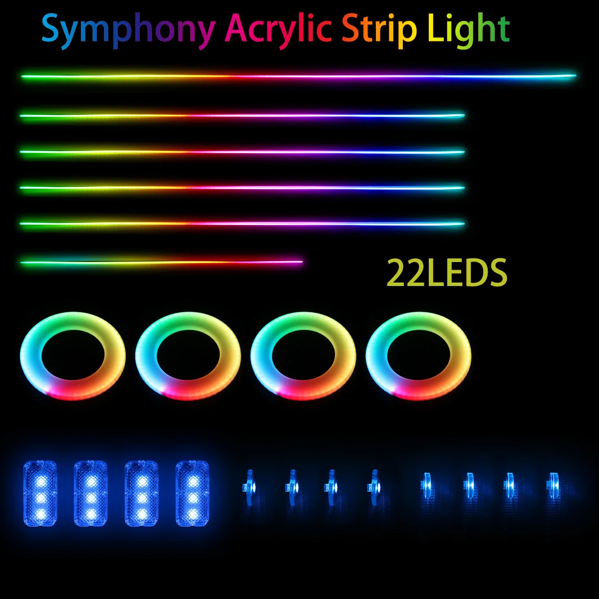 - Item Type : 22 in 1 ( 6 Pcs LED Light Strip?75cm*4+110cm*1+35cm*1? + 4 Ambient(foot) lights + 4 Door bowl lights+ 4 Storage lights+ 4*Audio Light +1 Main control box + 4 Sub control+1 Touch Button)