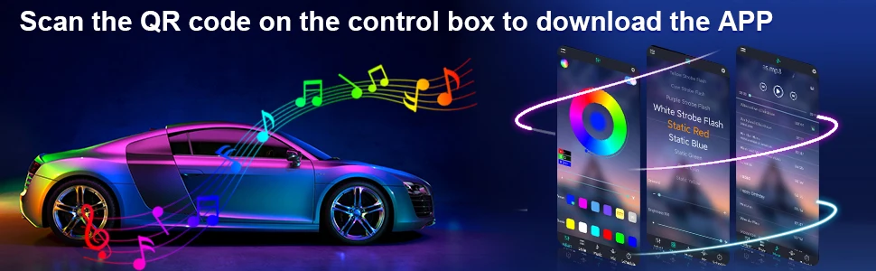 1) Active sound effects: The LED under the car's brightness system is equipped with sound sensors that allow the LED lights synchronized with musical rhythm. The LED light music strip follows the rhythm and adjusts the flicker to adapt to the strength of the sound.