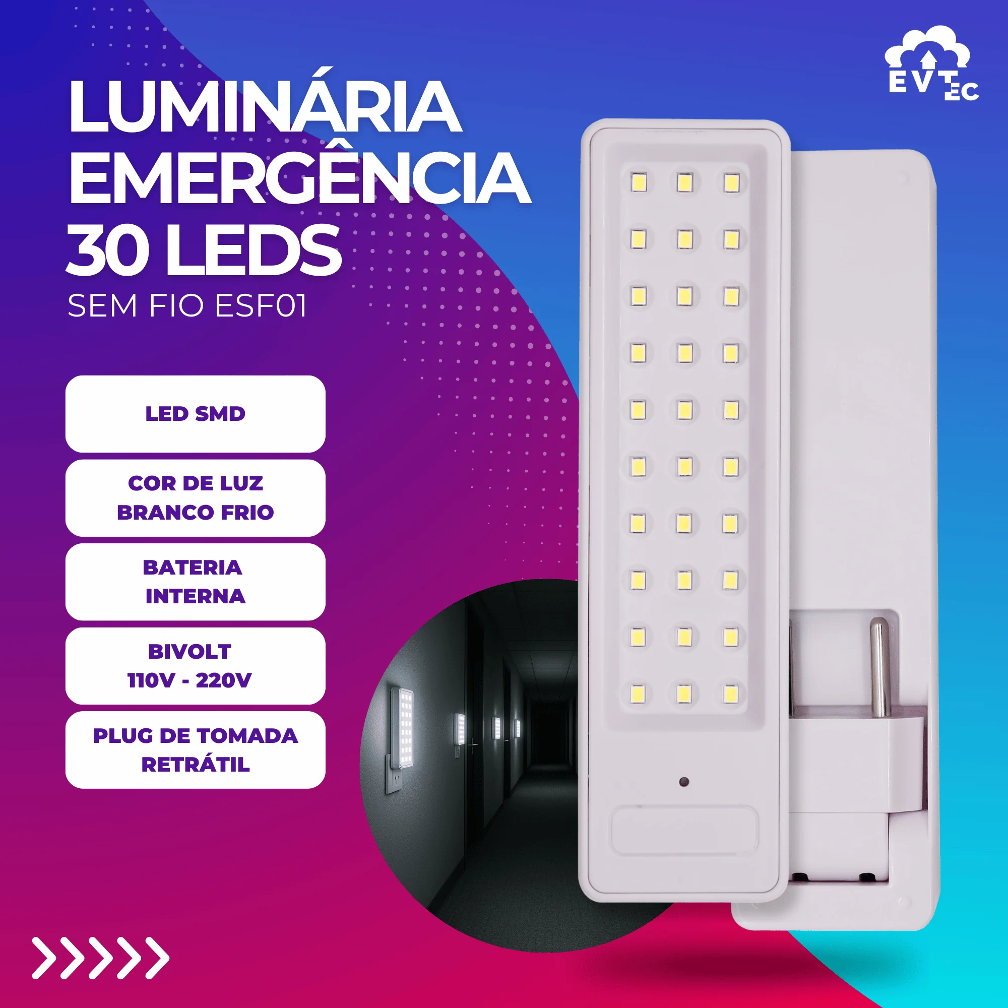 Por possuir uma bateria recarregável, você poderá usá-la quantas vezes precisar. É importante que você se certifique de respeitar o seu tempo de carregamento quando a energia elétrica estiver funcionando, para garantir o funcionamento adequado. Ela também possui um botão de teste que lhe permitirá verificar seu bom funcionamento e seu design lhe dará a possibilidade de fixar a qualquer parede e evitar o roubo.